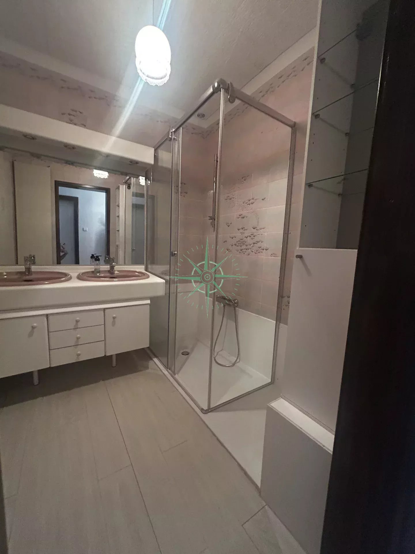• D’une salle de bain avec branchement machine à laver, double vasques,